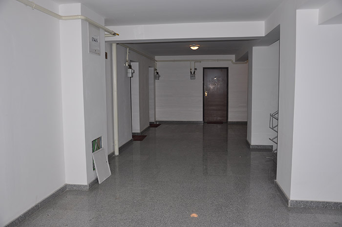 Intrarea de la parter eate realizată prin placare cu piatra naturală (tip granit sau similar), la fel şi holurile de etaj şi scările. Balustradele scărilor sunt din profile de inox.